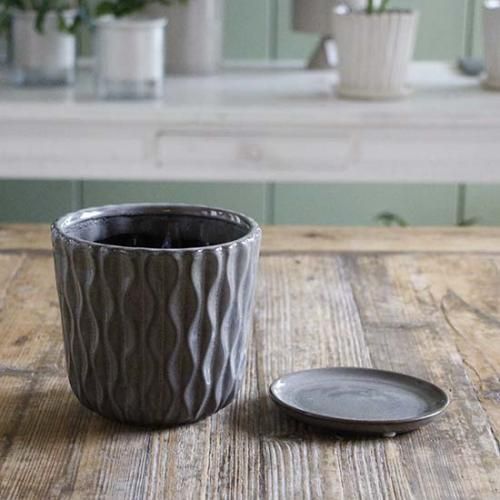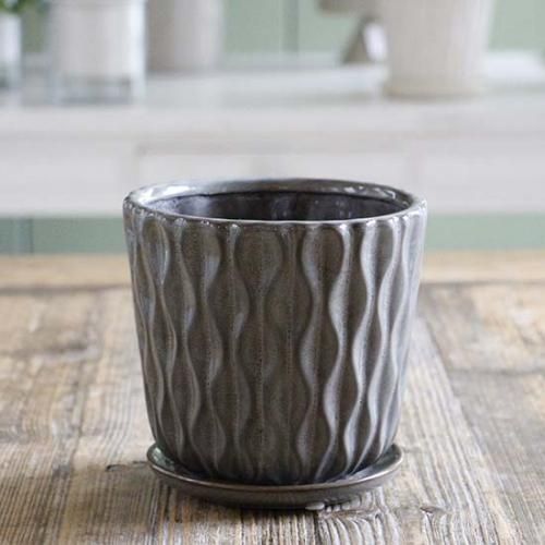 【鉢のサイズ】H15.5×Φ16 陶器、底穴あり、皿付き