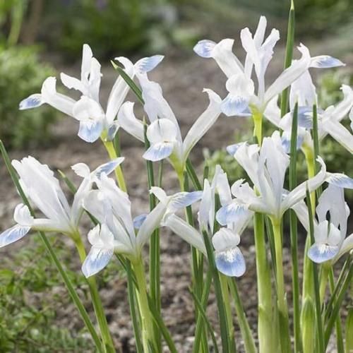 ピュアホワイト×パステルブルーのコントラストが早春の庭を爽やかに演出します。