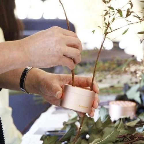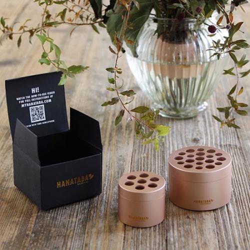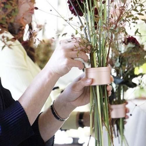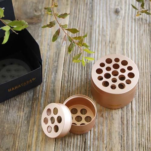 お好みの花や枝を穴に差してひねると、華やかで軽やかなフラワーアレンジメントが簡単に作れます。