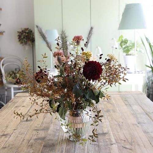 少ない花材で、ふんわりとボリューム感のある花束が作れます。